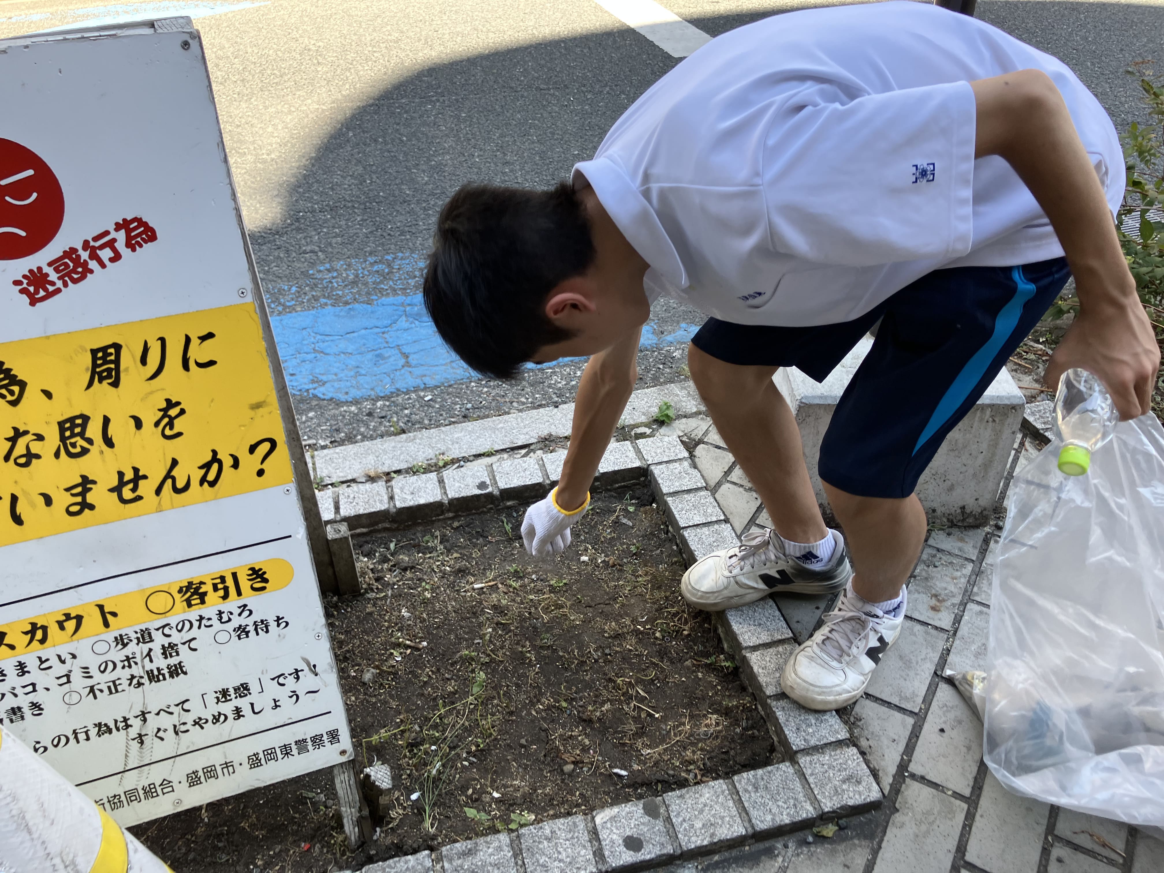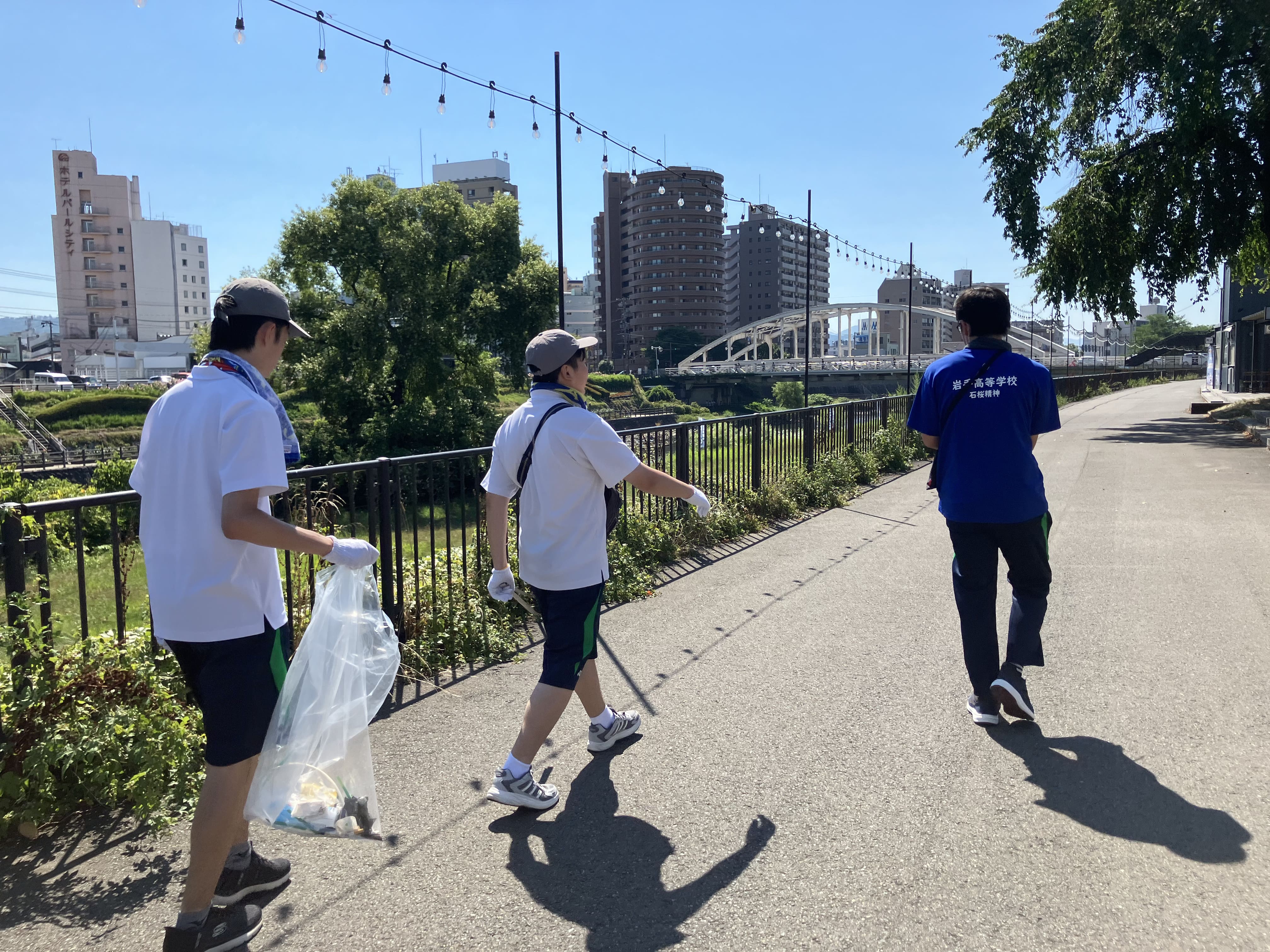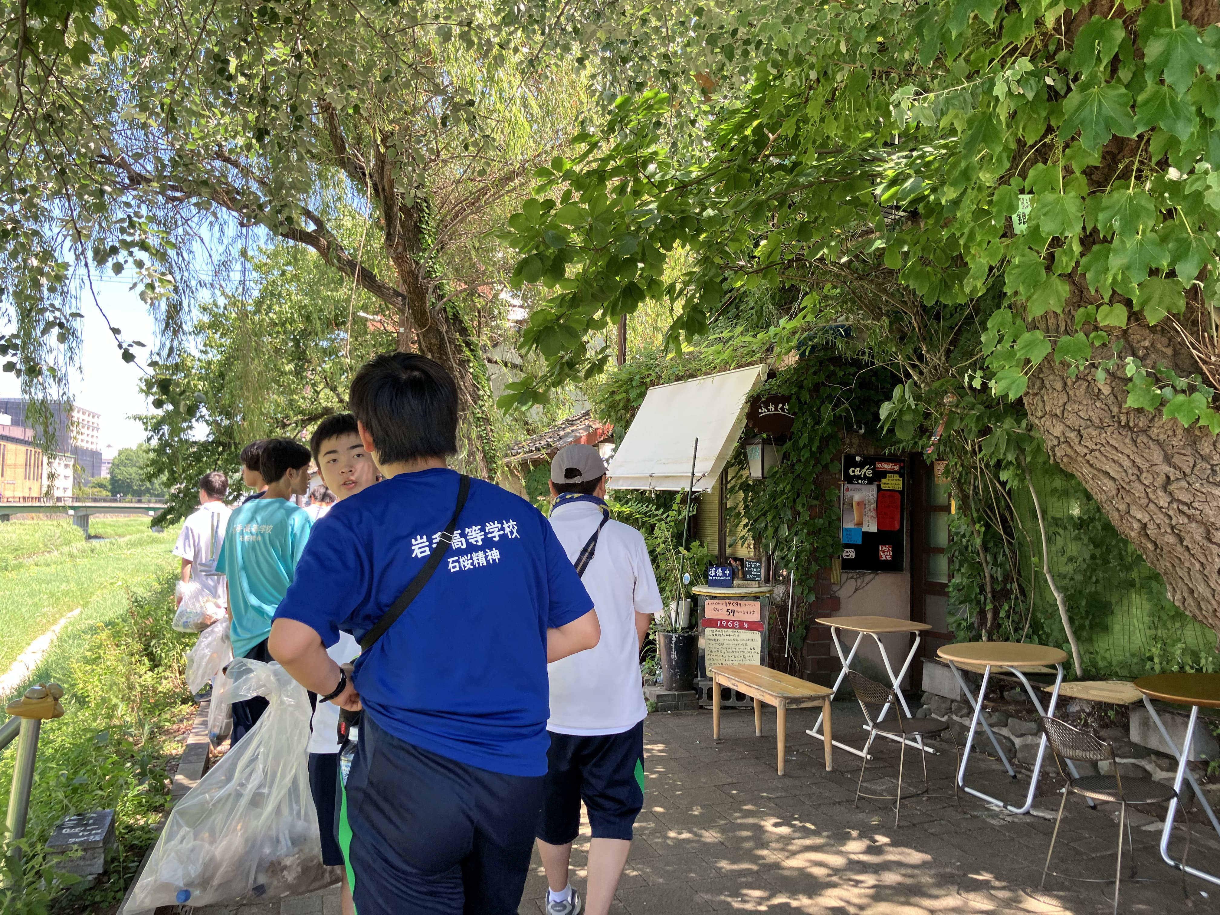 岩手高校国際交流部 ゴミ拾い活動報告 <実施日時> 2025年7月30日(水) 8:20〜12:30 <場所> マチナカ組 岩手高校前〜材木町商店街〜木伏〜開運橋〜盛岡城跡公園〜岩手銀行赤レンガ館 〜中の橋〜上の橋〜桜山神社前商店街〜大通り〜クロステラス前〜岩手高校 <参加者> ・国際交流部12名 活動の様子 今回の活動では、川沿いも街中もタバコの吸い殻がとても多く見られました。 川ではバーベキューをしたと思われる残骸やタバコの吸い殻が散乱しており、街中では歩道や自動販売機の近くに吸い殻が目立ちました。 特に自動販売機の横にはゴミ箱がなく、缶やペットボトルが隠すように捨てられているのが気になりました。 感想 ゴミ袋いっぱいに集まるほどの量で、「タバコの吸い殻がこんなに多いのか」と驚きました。 街も川もきれいに見えても、よく見るとまだまだ改善が必要だと感じました。 これからも自分たちができることを続けていきたいと思います。