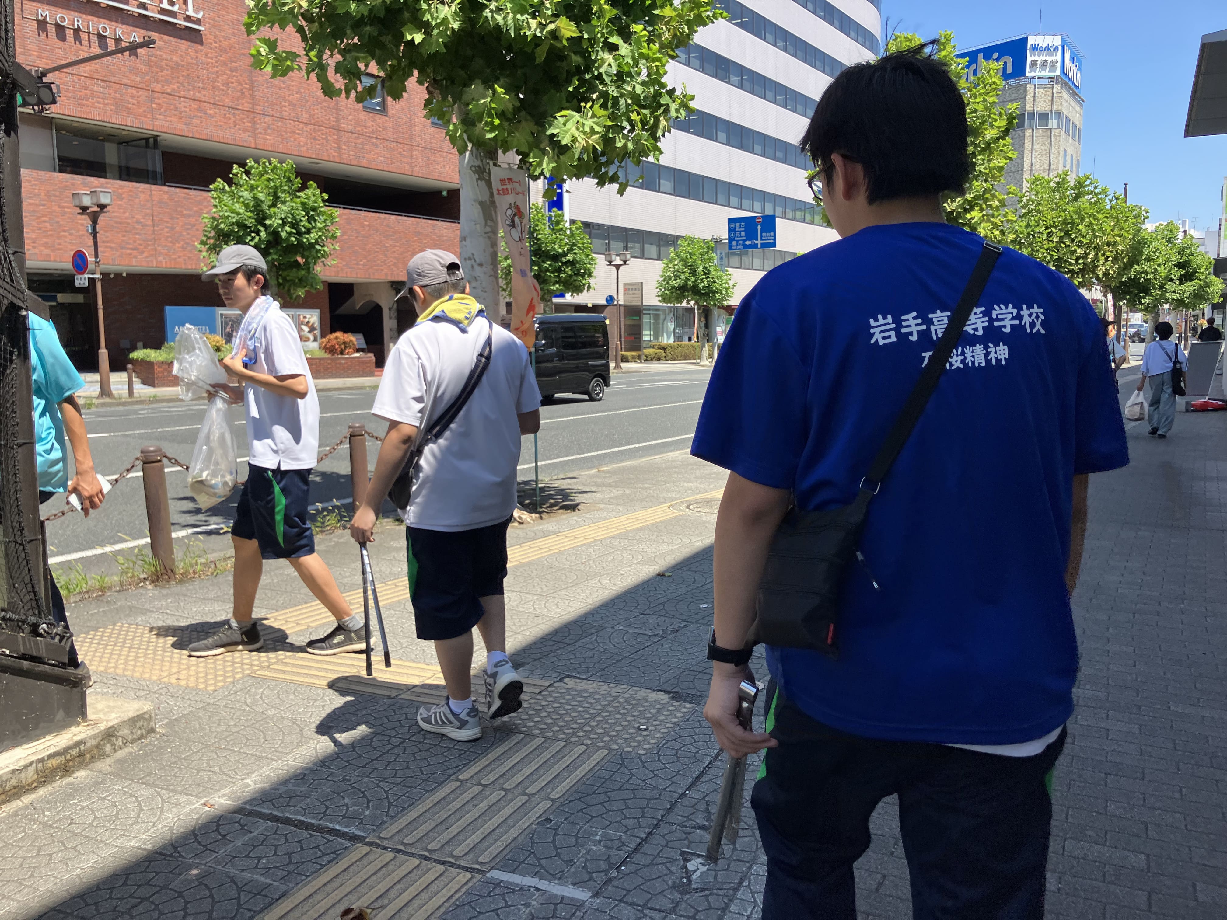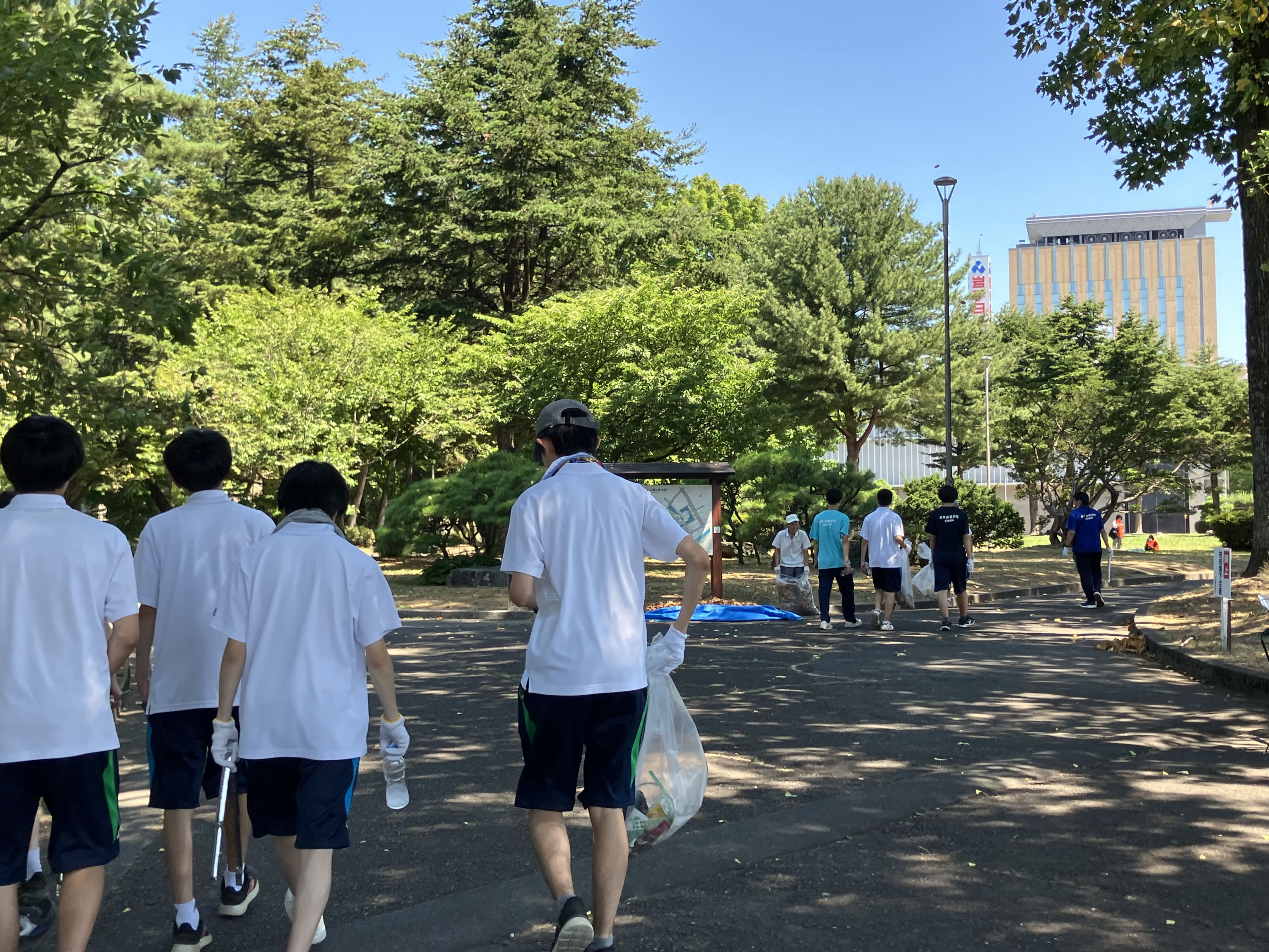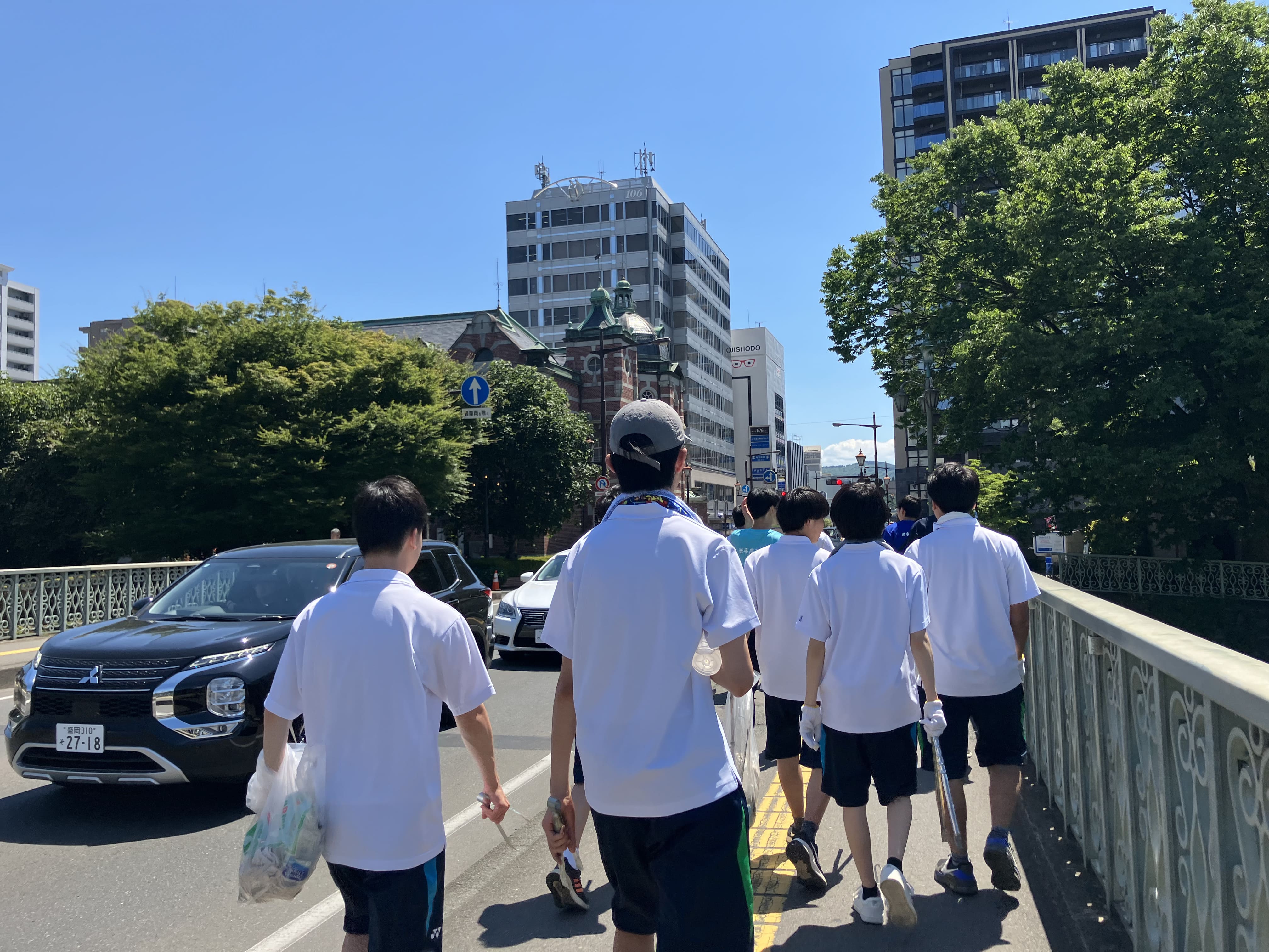 岩手高校国際交流部 ゴミ拾い活動報告 <実施日時> 2025年7月30日(水) 8:20〜12:30 <場所> マチナカ組 岩手高校前〜材木町商店街〜木伏〜開運橋〜盛岡城跡公園〜岩手銀行赤レンガ館 〜中の橋〜上の橋〜桜山神社前商店街〜大通り〜クロステラス前〜岩手高校 <参加者> ・国際交流部12名 活動の様子 今回の活動では、川沿いも街中もタバコの吸い殻がとても多く見られました。 川ではバーベキューをしたと思われる残骸やタバコの吸い殻が散乱しており、街中では歩道や自動販売機の近くに吸い殻が目立ちました。 特に自動販売機の横にはゴミ箱がなく、缶やペットボトルが隠すように捨てられているのが気になりました。 感想 ゴミ袋いっぱいに集まるほどの量で、「タバコの吸い殻がこんなに多いのか」と驚きました。 街も川もきれいに見えても、よく見るとまだまだ改善が必要だと感じました。 これからも自分たちができることを続けていきたいと思います。
