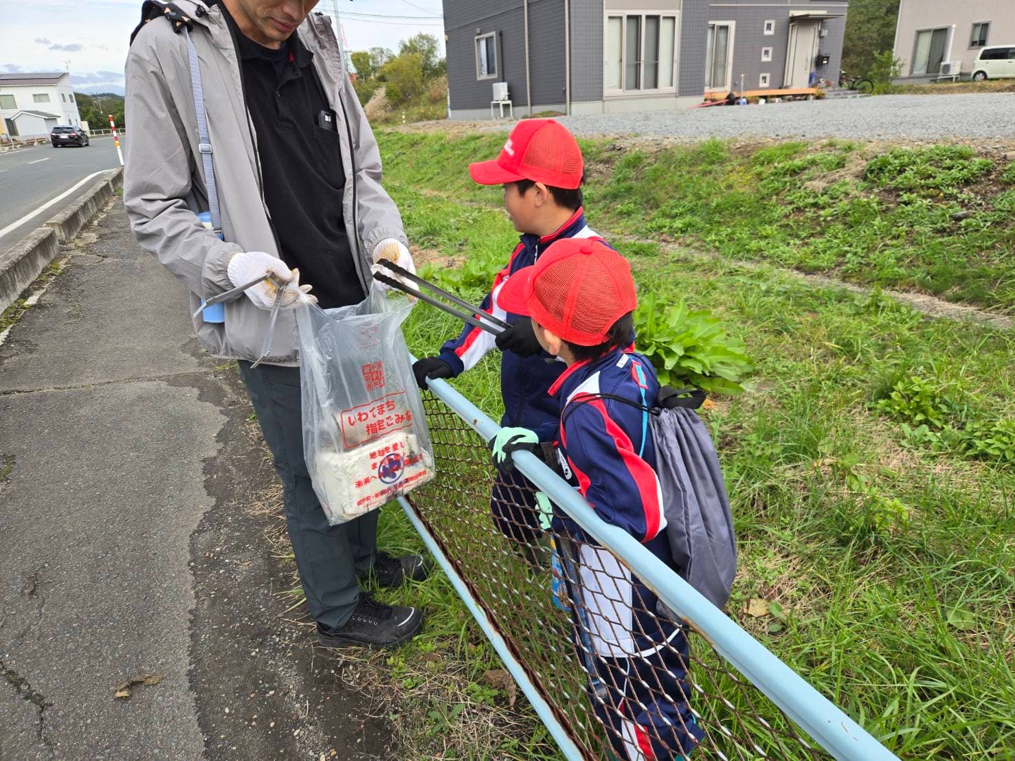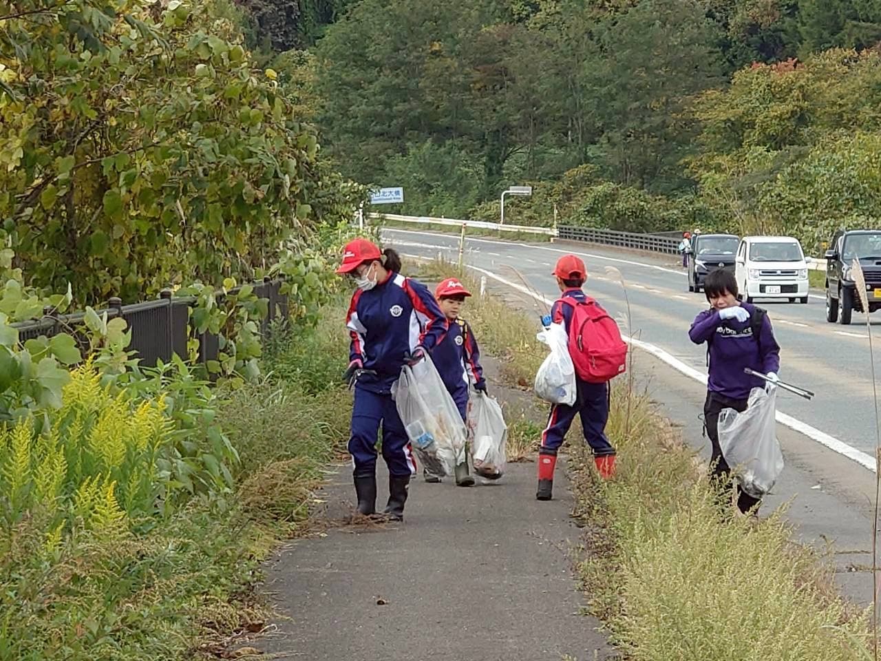 ゴミの種類: ペットボトル, 缶, ビニール袋, タバコの吸い殻, その他 | ゴミ袋の枚数: 5 | その他: ガラスくず、瓶・缶のキャップ部分やネジなどの金属類不燃物、ライター、たばこの空き箱や紙類(広告、ちり紙など)などの可燃物、たい肥の袋などの農業用品、プラスチック容器、プラスチックの破片 等々 | 国道4号線グループ2つと小学校周辺グループ1つの3手に分かれて活動しました。ごみ拾い活動を通じて、地域の環境保全だけでなく児童の環境問題に対する関心が高まればと思います。 ※丹藤川には過去に不法投棄されたごみが堆積しているところがあります。少年団活動では問題解決困難であるため役場に届け出て対応をお願いしています。